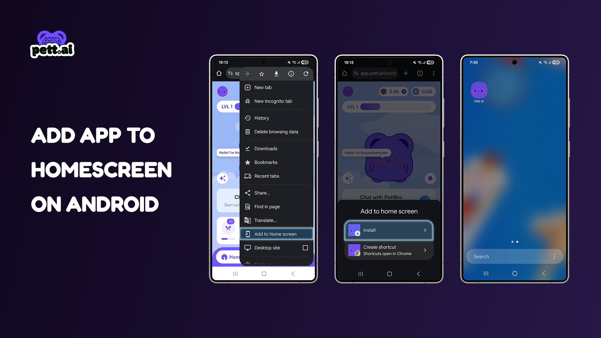 You’ll see a prompt: “Add Pett.ai to Home screen” – tap it